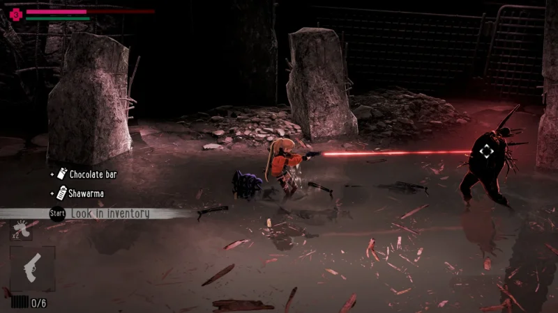 В арсенале у Полли - скейтборд для дерзких трюков и пистолет, который заряжается лучами света. Настроение здесь такое: пару раз выстрелил - и уже пора отползать, экономя выносливость и боеприпасы. Затем приходит возможность схватить дробовик, пулемёт или гранатомёт, но не стоит жадничать - лишнего не унесёшь. Враги будто устроили праздник непослушания, но побеждённые оставляют маски, открывающие новые ритуалы и проходы. Волшебные шепты помогают Полли призывать шипы или даже взмывать ввысь, если поймёте, как не врезаться в потолок.
