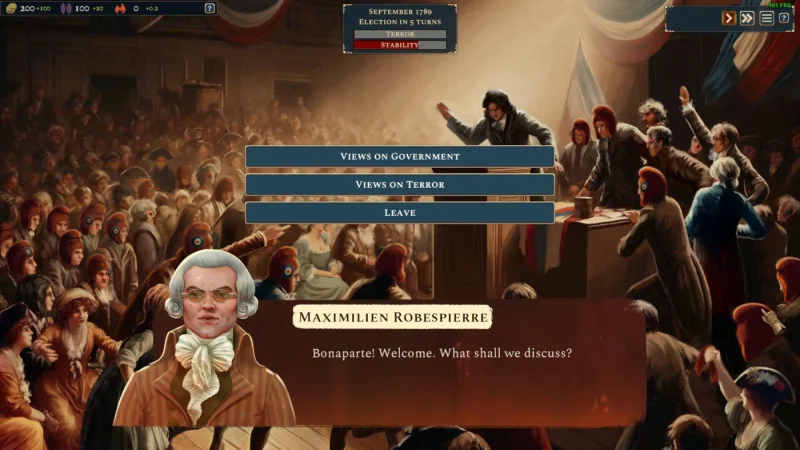 Игра расставляет карты — кто добьётся власти? Станете ли вы сторонником королевской власти, шагнёте в сторону зрелых реформ или повернёте штурвал к диктатуре якобинцев? Ваши решения влияют на все сословия, а знаменитости той эпохи — Робеспьер, Лафайет и Дантон — станут как союзниками, так и соперниками.