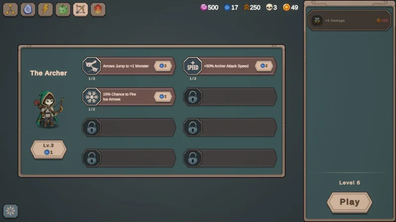 Чем больше слизистых созданий отправляются в небытие, тем изощреннее становятся методы их устранения. Древо способностей предлагает не сухие проценты, а реальные изменения: стрелы начинают отскакивать от врагов, появляется шанс нанести сокрушительный удар, а сбор ресурсов усиливает вашего персонажа. Особое очарование придают сияющие монстры с уникальными способностями, появляющиеся в самый неожиданный момент.