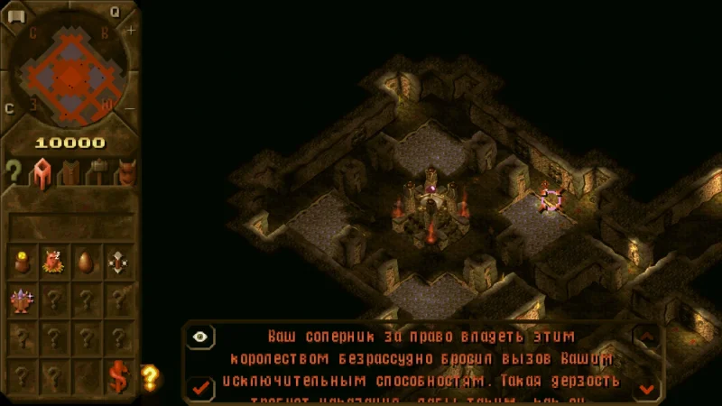 Забудьте о рыцарях в сияющих доспехах. В этой культовой стратегии вы – сам Хранитель, властитель мрачных лабиринтов, чье царство лежит в глубине, а не на поверхности. Ваши верные слуги – это причудливые демоны, ненасытные адские псы и костяные скелеты, готовые на все за миску похлебки и крепкий тычок для мотивации. Ваша цель – выстроить империю зла, выкопать бесконечные тоннели, вырастить грозную армию и разбить сердца вражеских крепостей, буквально. Весь этот хаос представлен с уникальной перспективы снизу вверх, где каждый удар кирки и каждый крик пленника – часть вашей безумной, но гениальной системы.
