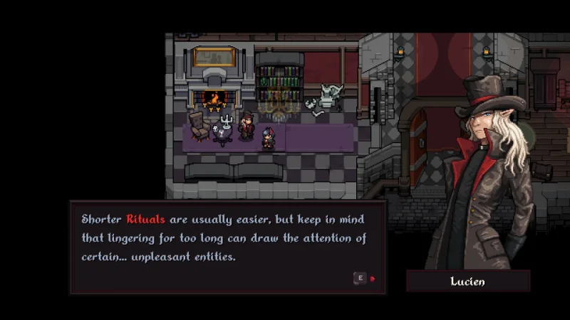 Игровой процесс строится на идеальном симбиозе ваших рефлексов и стратегической мысли. Вы кружитесь в вихре боя, уворачиваясь от ливня снарядов и отвечая шквальным огнем во все стороны. Каждое поражение — не конец, а ступенька к силе. Возвращаясь в убежище, вы вкладываете добытые ресурсы в постоянное развитие, открывая новые грани своего демонического арсенала. Между сражениями оживает база, где каждый союзник — от механика до вампира — готов поделиться частью своей истории. Игра мастерски сочетает пиксельную эстетику с кинетической энергией чистого экшена, создавая неповторимую атмосферу мрачного величия.