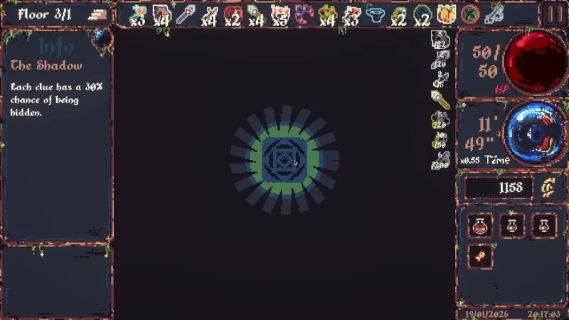 - Собирайте мощные артефакты, кардинально меняющие игровой процесс, от замедления времени до автоматических подсказок.