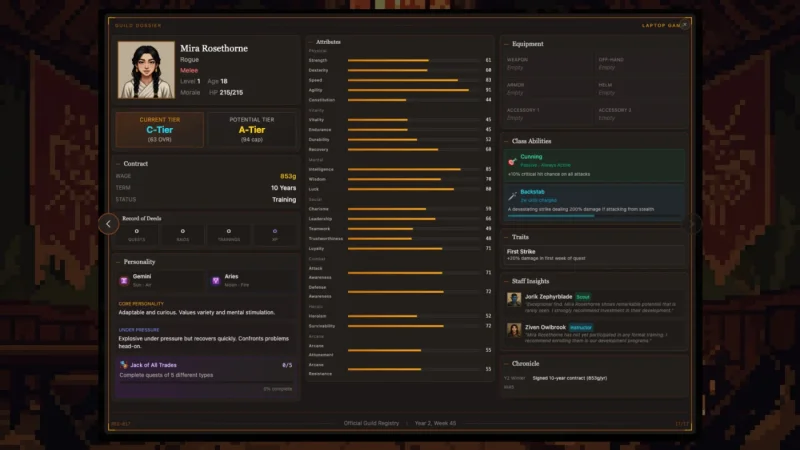 Представьте себя у руля не просто отряда, а целого братства авантюристов, чья история будет длиться столетия. Вам предстоит создать гильдию с чистого листа и провести ее через поколения славы, потерь и триумфов. Это глубокая и вдумчивая симуляция управления, где каждое решение отзывается эхом в судьбах ваших подопечных.