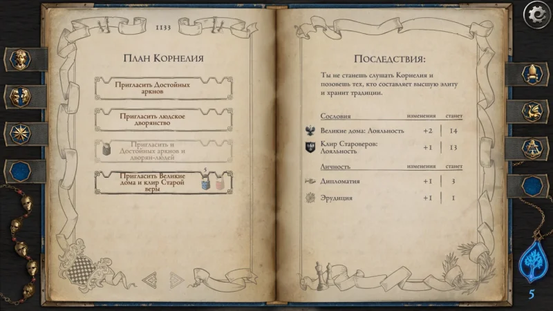 Ваша история начинается в юные годы и проходит через все этапы взросления до момента восшествия на престол. Вам предстоит лавировать между интересами знати, церкви и простого народа, где любое решение имеет далеко идущие последствия. Поддержите ли вы вековые традиции или рискнете пойти против воли богов? Станете ли духовным лидером или попытаетесь разрушить древний Пакт, рискуя всем? Игра не знает компромиссов - здесь каждый выбор отнимает что-то равноценное. Доверие одного сословия оборачивается ненавистью другого, а благо народа вызывает гнев духовенства. Ваш характер будет формироваться через окружение и принятые решения, оставляя след в душе надолго после завершения игры.