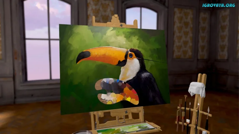 Главная магия Vermillion раскрывается при использовании гарнитуры VR. Вы буквально берете кисть в руки, чувствуя каждый мазок на холсте. Игра блестяще имитирует физику смешивания красок на палитре, позволяя экспериментировать с бесчисленными оттенками. Выбирайте локацию, размер полотна и творите в своем ритме, будь то умиротворяющий закат или шумный городской вид.