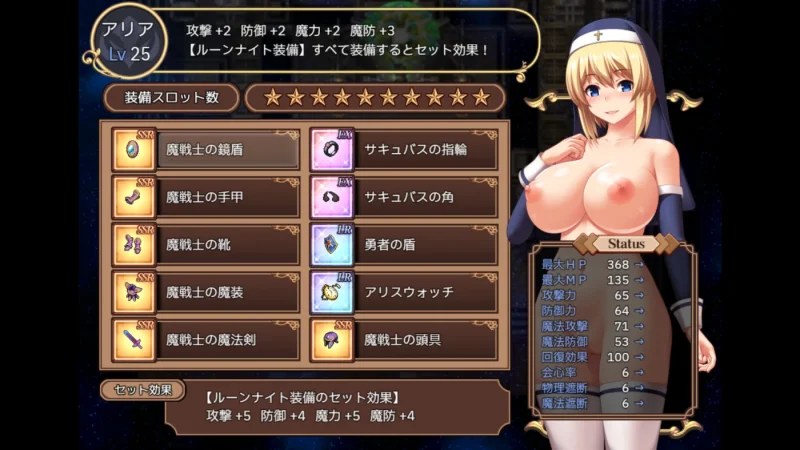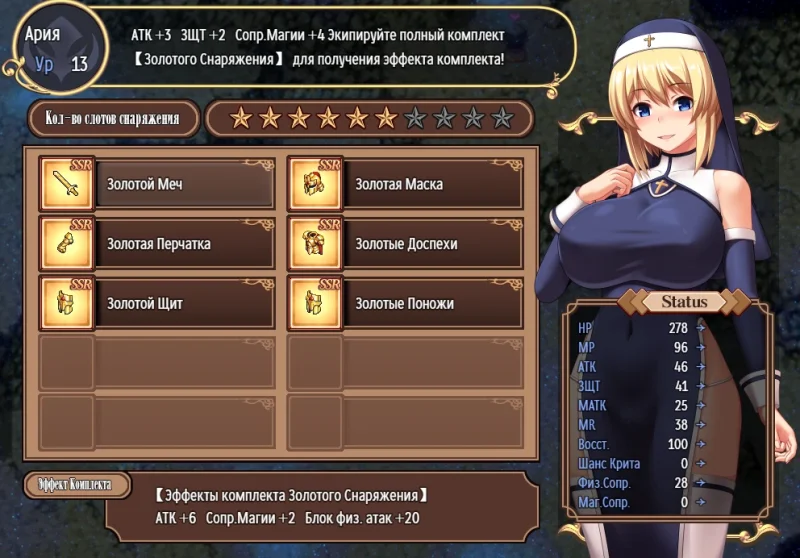 Исследуйте детализированный мир, созданный на движке RPG Maker, где каждый шаг может привести к встрече с заражённым. Сражения здесь — это пошаговая стратегия с откровенным подтекстом, где поражение или применение особых умений открывают взрослые сцены. Ария не только сражается, но и занимается алхимией, создавая уникальные комплекты брони, которые меняют не только её статистики, но и внешний вид. Весь визуальный ряд, от персонажей до фонов, выполнен вручную в узнаваемом доджин-стиле, без намёка на цензуру, с вниманием к каждой чувственной детали. Это история о жертве и спасении, где главной героине предстоит нести надежду в земли, охваченные пламенем низменных инстинктов.