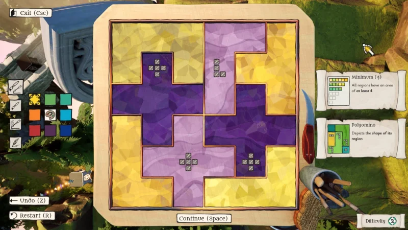 Игра предлагает чистую, изящную логику без случайностей. Вы будете делить поле на участки, следуя более чем двадцати правилам. Эти принципы постепенно усложняются и переплетаются, превращая каждый уровень в изящную миниатюру для размышлений. Процесс интуитивно понятен: игра мягко направляет, объясняя ошибки, а подсказки всегда доступны без каких-либо штрафов. Прогресс нелинейный, позволяя возвращаться к сложным задачам позже, с новым опытом. После решения головоломки вас ждет исследование уютных локаций — от зачарованного леса до таинственного замка, где спрятано множество секретов.