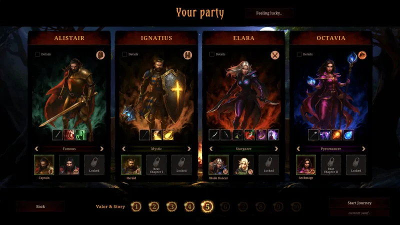 - Формируйте отряд из четырех героев, выбрав из двенадцати уникальных классов.