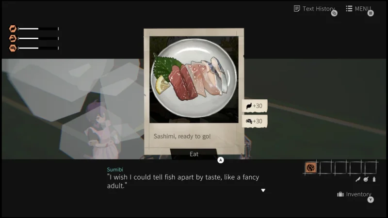 Геймплей этой истории - это медитативное движение вперед. Диалоги текут только тогда, когда крутится колесо. Остановитесь, и время замирает. Нужно искать ночлег в покинутых домах, днем - собирать припасы среди руин. Приготовленное блюдо может породить новый разговор или всколыхнуть болезненные воспоминания. Простая механика наполнена глубокой поэзией: пока Никоми и Сумиби готовят еду и смотрят друг на друга, они продолжают быть. Их союз, скрепленный абсурдной целью и взаимным вниманием, кажется единственным якорем в распадающейся реальности. Встречи с другими уцелевшими лишь подчеркивают хрупкость этого мира и ценность их совместного пути.