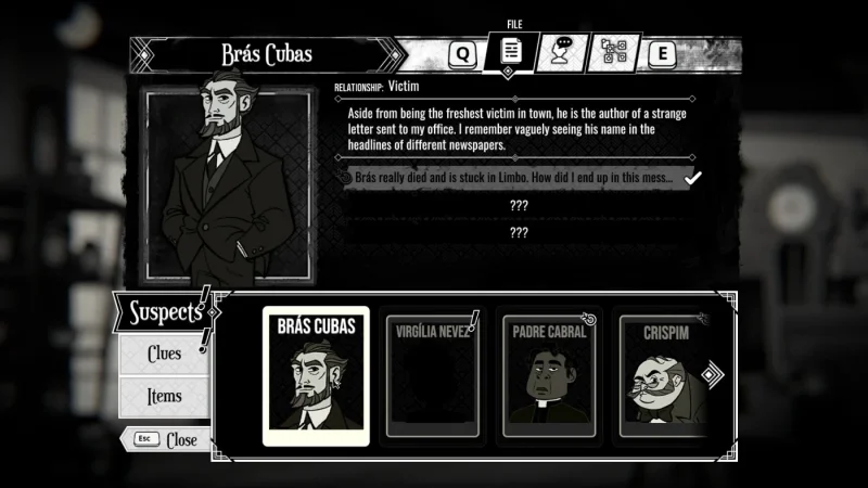 Представьте, что вы получаете письмо от покойника. В игре The Posthumous Investigation именно это и происходит. Вы - частный детектив в Рио-де-Жанейро 1937 года, а ваш новый клиент, аристократ Браз Кубас, уже мертв. Его последняя воля - найти убийцу, и вам предстоит взяться за самое необычное дело в карьере.