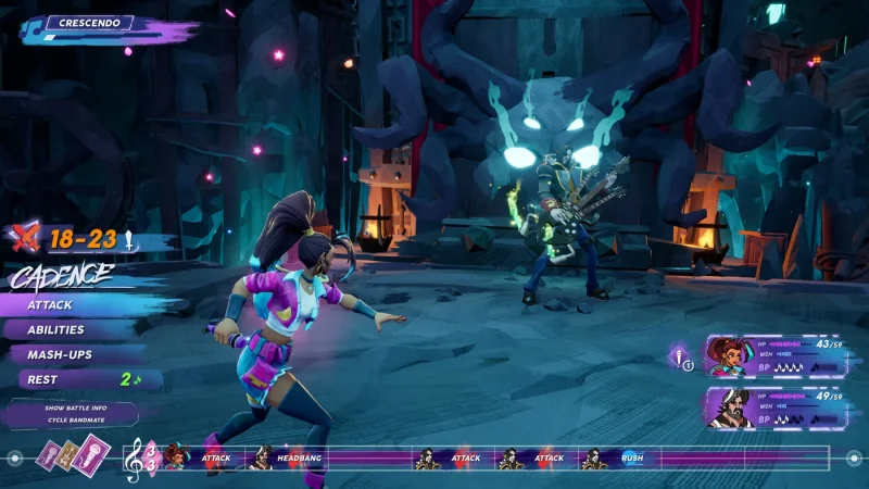 - Сражения в формате музыкальных выступлений, где каждый ход - это строфа, а урон зависит от точного попадания в ритм.