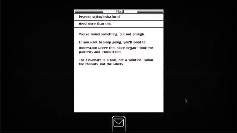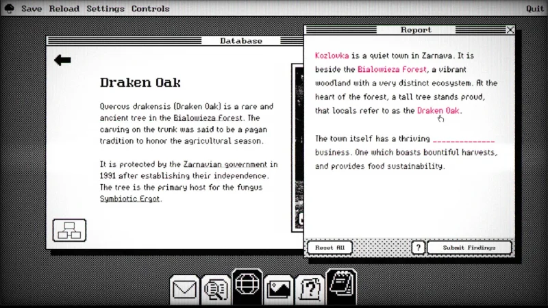 Сюжет затягивает вас в воронку событий. Вы начинаете замечать странности: правительство вырезает куски из статей, одни и те же фамилии всплывают снова и снова. На фотографиях прячутся скрытые детали, а дерево по имени Дракен Оук внушает первобытный ужас. Каждый новый отчет приносит письма и открывает доступ к новым страницам. Вы собираете пазл, который тянется через десятилетия. Прошлое и настоящее сплетаются в один тугой узел. Игра не требует сложных головоломок. Она проверяет вашу внимательность и умение сопоставлять факты. Атмосфера старого компьютера с CRT-эффектом, тревожная музыка и ощущение, что за сухими строчками прячется нечто зловещее, держат в напряжении до финала. Вас ждет несколько концовок. После прохождения захочется вернуться и посмотреть, что изменилось.