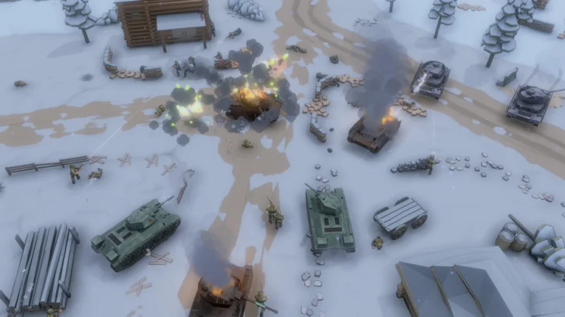 Вы не одиноки на поле боя. В любой момент отдавайте приказы целым отрядам: отправляйте их в обход, заставляйте подавлять огнем или занимать выгодные позиции. Артиллерийская поддержка и авиаудары добавляют разнообразия в каждый бой. Игра позволяет проходить миссии как угодно — от безбашенного напора до продуманной тактики. Визуальный стиль мультяшный и низкополигональный, что придает уникальный шарм.