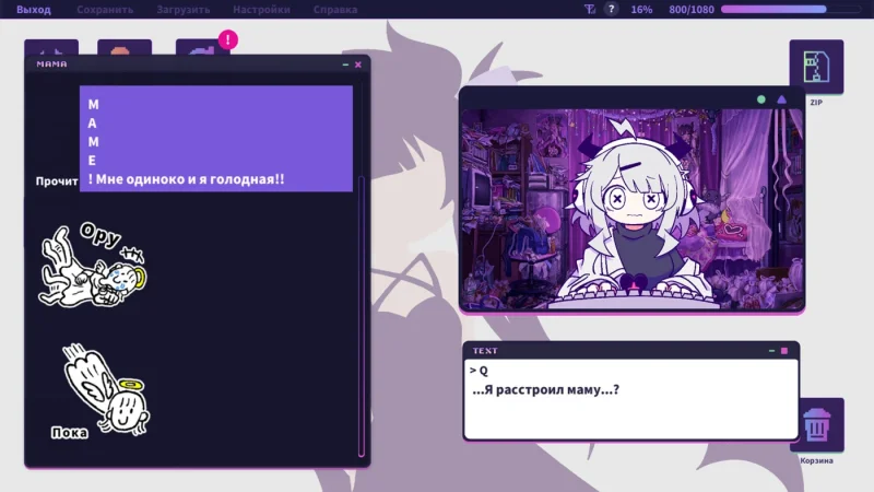 В основе лежит классический четырехполосный ритм-гейм с коллекцией из более чем тридцати треков. Среди них есть оригинальные композиции и лицензированные хиты из Touhou и Needy Streamer Overload. Вы отбиваете ноты, а после каждого трека выбираете карточки с «докидоки», «юнюн» и «хайпом». Затем крутите рулетку и получаете готовый шизопост от Qtie. Эти посты — чистый абсурд про Deep State, цифровые деньги и солнце как орудие контроля. Между песнями открываются дневники, записки и сцены из жизни Qtie. Сквозь хаос проглядывает грустная история об одиночестве и попытке сбежать от реальности. Это цепляет за живое и создает невероятную атмосферу.