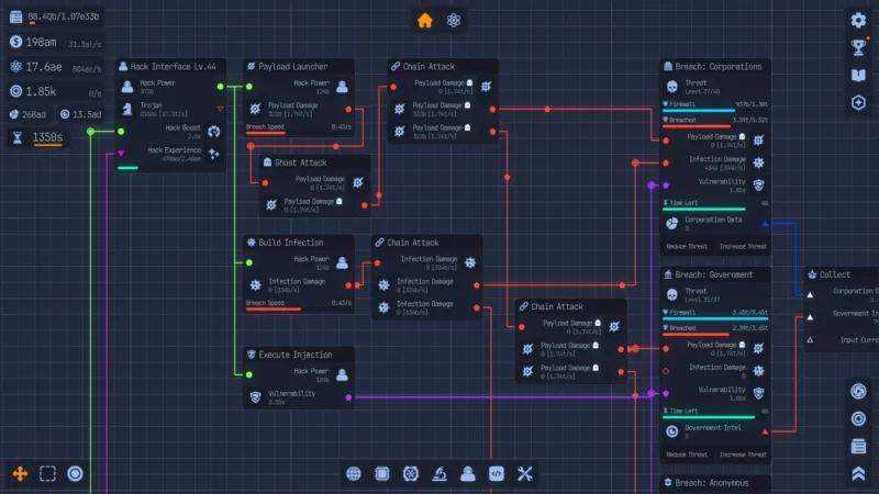 В рамках проекта доступно несколько ключевых направлений. Игрок может сканировать файлы, открывая доступ к новым технологиям через дерево исследований. Также предусмотрен хакинг — взлом организаций для добычи ценной информации и ресурсов. Отдельная ветка посвящена написанию кода, позволяющего создавать пользовательские приложения и оптимизации. Самый масштабный раздел — развитие искусственного интеллекта: его необходимо кормить скачанными файлами, чтобы он обучался, повышал свою эффективность и в конечном итоге помог избежать тепловой смерти вселенной. Весь игровой процесс завязан на грамотном распределении ресурсов, управлении производительностью и постоянном росте.