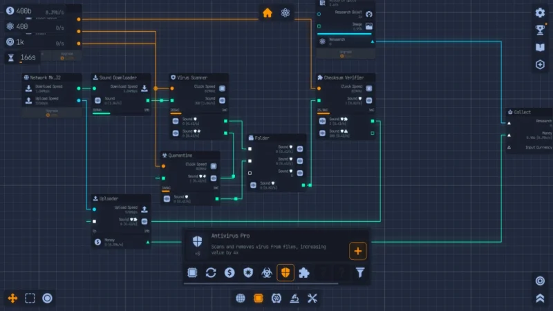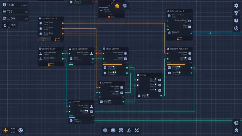 Научно-фантастический симулятор управления Upload Labs предлагает геймерам собрать компьютерную систему буквально с чистого листа. Ключевой элемент геймплея — специальные окна-интерфейсы, которые отображают различные компоненты и вычислительные процессы. Игроку предстоит соединять эти узлы входами и выходами, регулировать потоки данных и выстраивать работающие цепочки для загрузки, обработки и выгрузки файлов. На старте конструкция предельно примитивна, но с развитием она трансформируется в настоящий мощный механизм, который постоянно модернизируется и наращивается для достижения новых целей.