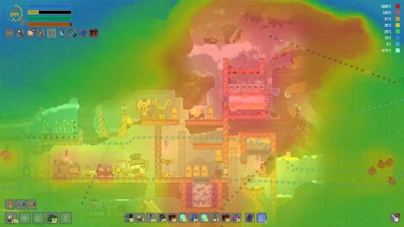 Away Team — это свежий проект в той же вселенной, что и Oxygen Not Included, от студии Klei. Вас заносит на чужую инопланетную планету из-за сбоя в навигации исследовательской ракеты. Дубликант остается один (пока что) и обязан выживать, обустраиваясь в незнакомом окружении. Здесь каждый закон реального мира действует в полную силу: жидкости стекают и испаряются, газы перемешиваются по физическим правилам, тепло перетекает от блока к блоку, а химические реакции способны либо помочь, либо погубить базу. Придется непрерывно следить за температурой, давлением и составом атмосферы — промедление грозит либо жарой, либо ледяным холодом.