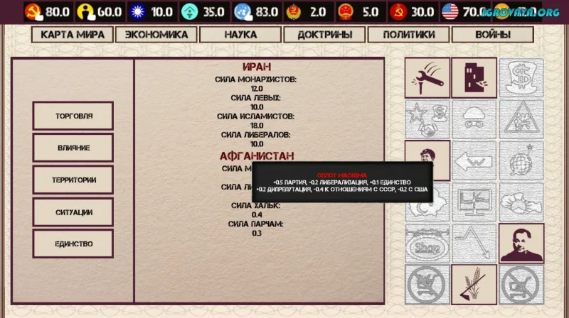 - Глубокая политическая система, позволяющая играть за различные стороны конфликта.