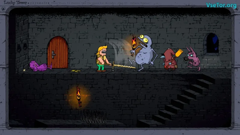 Lucky Tower Ultimate — это увлекательная и комедийная игра в жанре roguelite, где каждое ваше приключение станет непревзойденным испытанием. Игра продолжает традиции флеш-серии Lucky Tower, предоставляя игрокам уникальные, порой абсурдные ситуации. Главный персонаж, храбрый рыцарь Фон Ванст, должен преодолевать сложные препятствия в towering skyscraper, который меняется с каждым новым походом. Здесь классические элементы рогаликов переплетаются с динамичным комедийным сюжетом, где уровни полны неожиданных ловушек и противников.
