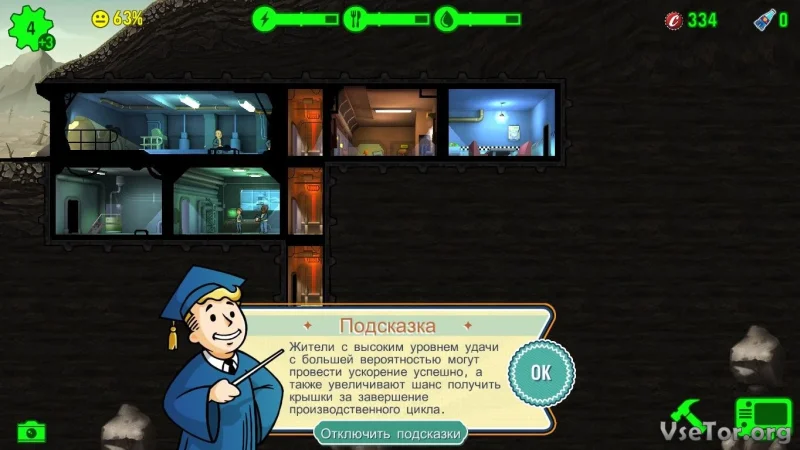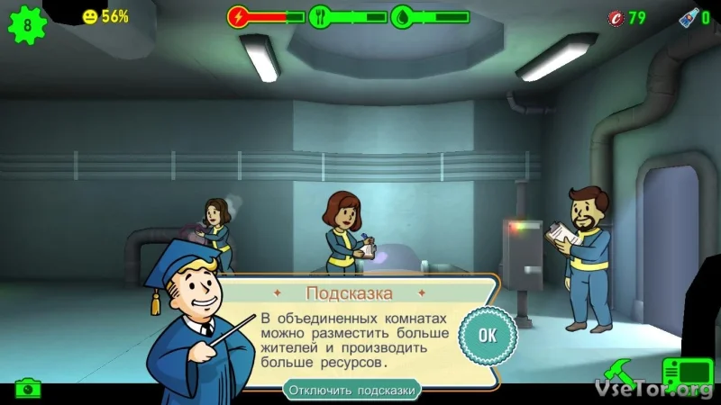 В Fallout Shelter нет границ для вашей фантазии! Применяйте стратегию и принимайте важные решения, чтобы обеспечить комфорт и безопасность своим подчиненным в этом постапокалиптическом мире.