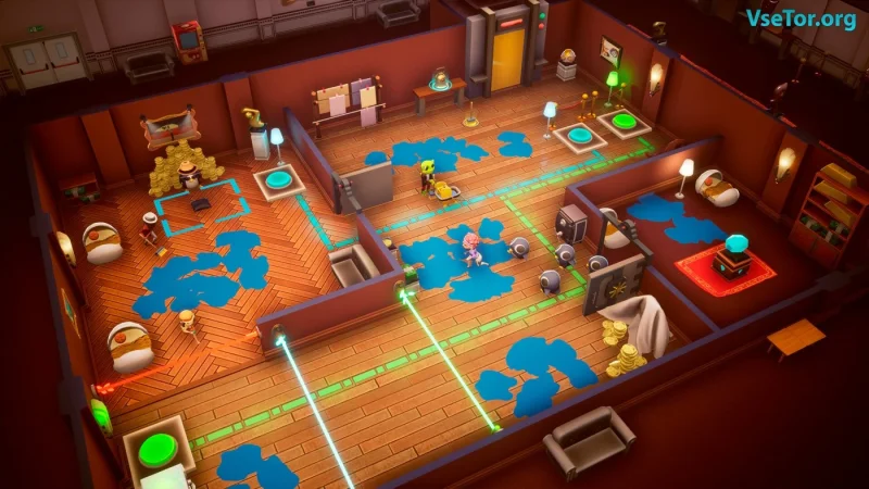 В игре представлено множество интересных заданий, начиная от уборки пыли и чистки ковров до ухода за инопланетными младенцами и ловли призраков. Чем выше вы поднимаетесь по этажам, тем более сложные и абсурдные задания вас ожидают. Вам предстоит не только взаимодействовать с различными объектами, но и координировать свои действия с другими игроками, чтобы справляться с безумными испытаниями и получать положительные отзывы от гостей отеля.