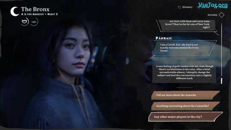 Vampire: The Masquerade - Reckoning of New York является заключительной частью трилогии, основанной на знаменитом вселенной World of Darkness. В этой визуальной новелле вампирская политика и интриги оказываются в центре событий. Сюжет разворачивается в 2024 году, когда Нью-Йорк становится ареной борьбы за власть между двумя главными фракциями — Камарильей и Анархами, находящимися на грани конфликта.