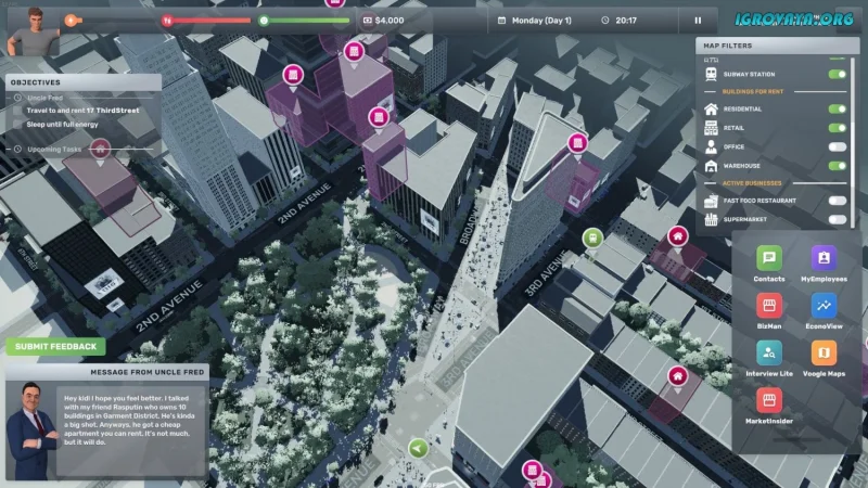 Не забывайте об отдыхе вашего персонажа, ведь усталость может привести к неожиданным последствиям, таким как болезнь. Уделяйте время не только бизнесу, но и личной жизни — создавайте уютный дом или выбирайте просторные квартиры, соответствующие вашему новому статусу в мире бизнеса.