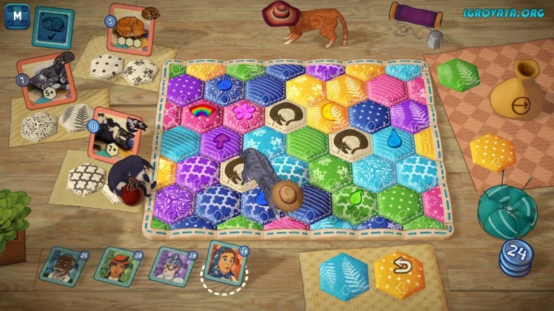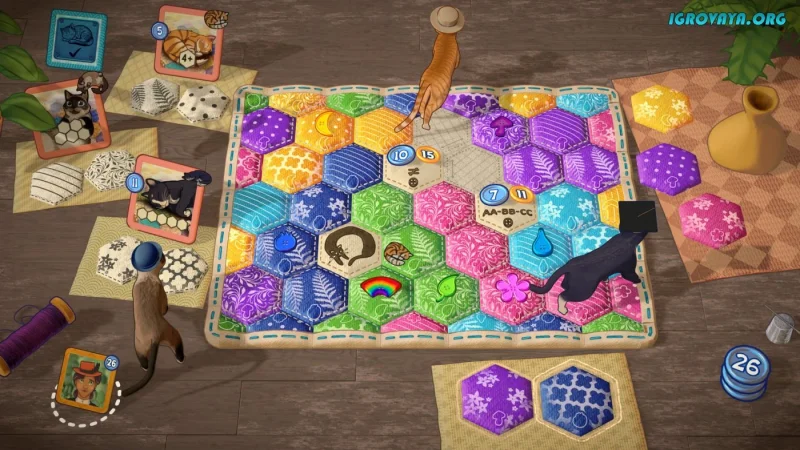 Если вы цените трогательные истории и расслабляющий геймплей, который одновременно требует немного умственной активности, вам обязательно стоит попробовать Quilts and Cats of Calico. Эта игра предлагает интересное сочетание увлекательного геймплея и оригинальных механик, которые подарят исключительно положительные эмоции. Скачайте Quilts and Cats of Calico и испытайте на себе все прелести этой цифровой настольной версии. Не стоит думать, что вас ожидает обычный игровой процесс, так как разработчики внедрили разнообразные правила и несколько игровых режимов, чтобы сделать ваше времяпрепровождение увлекательным.
