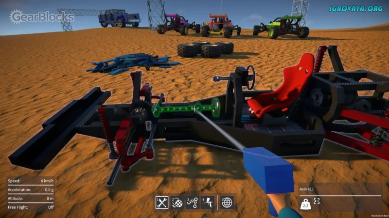 GearBlocks – это удивительный симулятор, который сочетает в себе элементы песочницы и творчества. Здесь у вас есть возможность взять инструменты в руки и создавать самые разнообразные устройства, включая уникальные транспортные средства, затем испытать их в самых различных условиях. Интересно, что в игре отсутствует классический сюжет или линия: это настоящая игровая площадка для ваших идей и креативности.