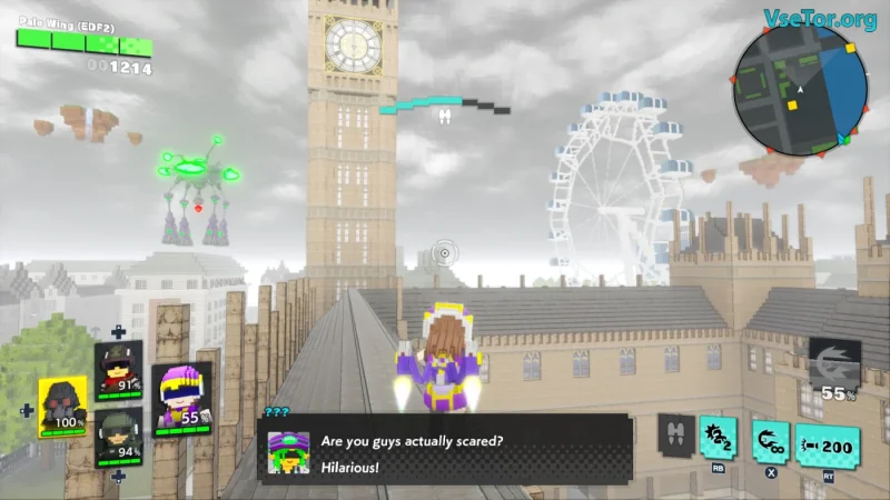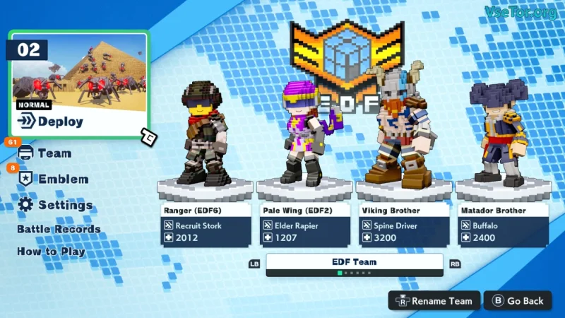 EARTH DEFENSE FORCE: WORLD BROTHERS 2 — это увлекательное продолжение знаменитого шутера, где противостояние гигантским насекомым и роботам превращается в захватывающее приключение. В отличие от предыдущих частей, новая игра отличается кубическим стилем, который напоминает мир LEGO или Minecraft, что придаёт ей особую мультяшность и лёгкость. Вам предстоит собрать отряд из четырёх уникальных персонажей, именуемых Братьями и Сестрами, каждый из которых олицетворяет свою страну и обладает индивидуальными навыками.