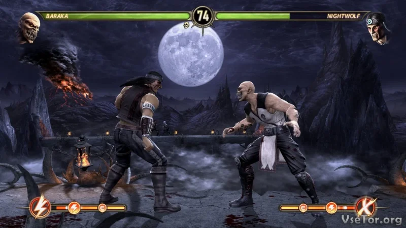 Сражения остались верны своей оригинальной версии, где вам предстоит встретиться с легендарными персонажами, такими как Скорпион, Рептилия, Шао Кан, Джонни Кейдж и многими другими. Вы сможете управлять одним из бойцов, используя его уникальные способности и выполняя динамичные комбо-атаки, а также триумфально завершать схватки с помощью знаменитых "Фаталити".