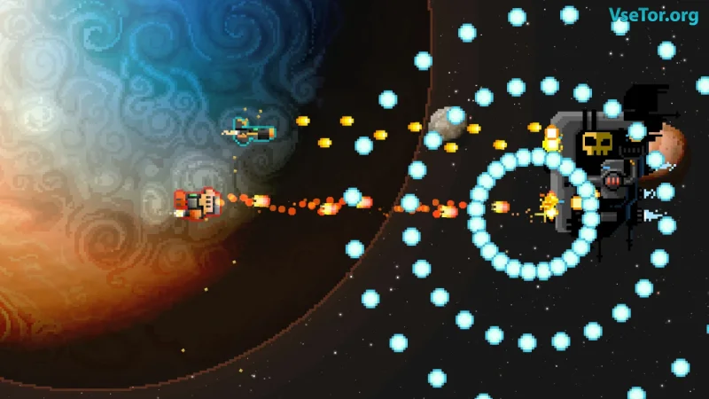 Сражения с боссами - это отдельный аспект игры Steredenn. Каждая встреча с ними предлагает что-то новое: от каскадных атак до настоящего "пулевого ада", где каждое мгновение требует максимальной концентрации и точности. После победы над боссом игрокам открываются возможности выбора улучшений для своего корабля, что может существенно повлиять на ход следующих сражений. Графика игры выполнена в великолепном пиксельном стиле, создающем атмосферу ретро. Плавные анимации взрывов и детализированные фоны космических систем дополняют высокое качество визуала, позволяя наслаждаться каждым моментом игрового процесса.