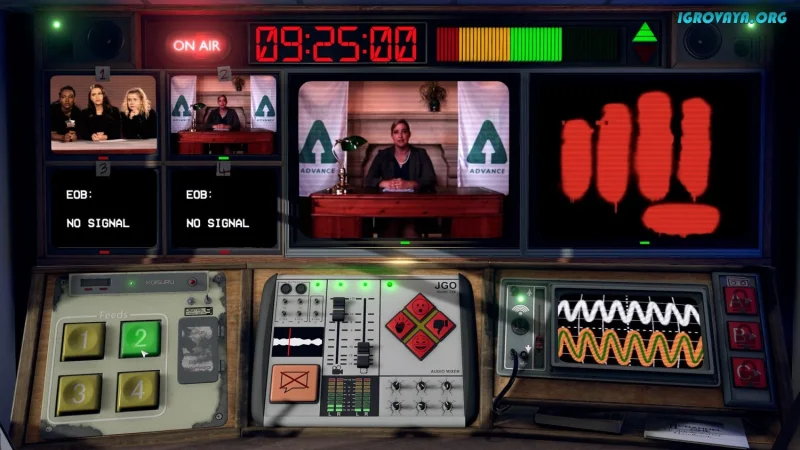 Игровой процесс сосредоточен на простоте и интуитивной механике. Вам необходимо действовать за пультом управления, выбирая камеры и определяя, какие слова "заматывать", а какие оставлять в эфире. Умело задавая вопросы в прямом эфире, вы влияете на то, как воспринимаются новости. «Не для эфира» – это не просто игра, а испытание, где каждое ваше действие имеет значение. Попробуйте найти баланс между коммерческими интересами и моральными дилеммами. Не упустите возможность стать частью невероятного мира медиа и манипуляций!