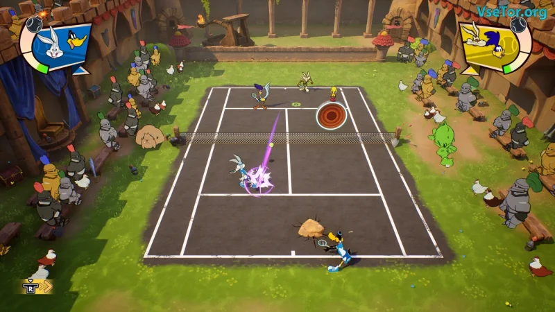 Вас ждет удивительное спортивное приключение в игре Looney Tunes: Wacky World of Sports, где классические герои, такие как Багз Банни, Даффи Дак и Таз, сражаются в самых эксцентричных соревнованиях. Эта аркада предлагает вам четыре захватывающие спортивные дисциплины: футбол, теннис, баскетбол и гольф, каждая из которых наполнена фирменным хаосом ACME и уникальными механиками.
