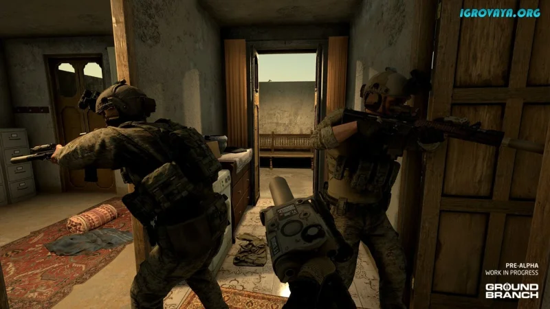 Разработчики уделили особое внимание реализму, что делает GROUND BRANCH поистине уникальным игровым опытом. Игроки смогут насладиться высококачественной физикой и сложными боевыми действиями, которые позволят полностью погрузиться в атмосферу. Уникальная система вида от первого лица предоставляет возможность непосредственно ощущать каждое действие персонажа. Например, если вы высунете руку из-за укрытия, противники могут это заметить, что поставит под угрозу вашу безопасность. С минималистичным интерфейсом вы сможете сосредоточиться на ситуации на поле боя без лишних отвлечений.