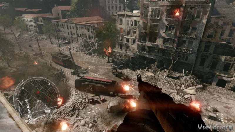 - Широкий арсенал оружия, от исторических винтовок до зенитных установок, а также возможность подбирать оружие у врагов и использовать гранаты.