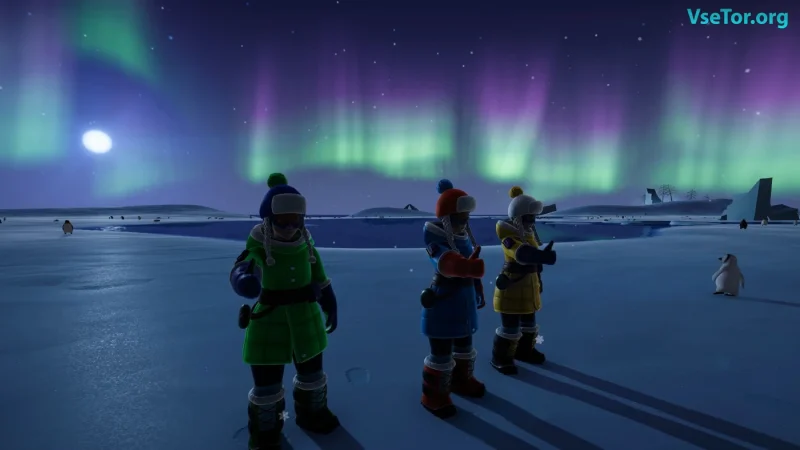- Возможность взаимодействовать с различными обитателями полюса.