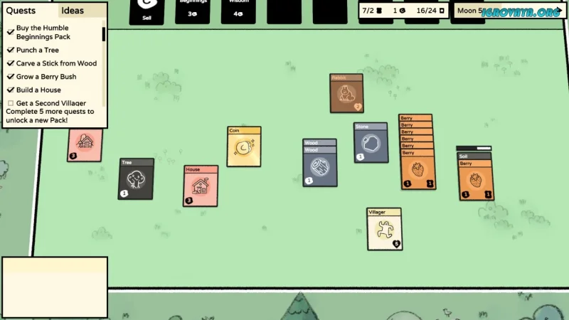 Скачав Stacklands с нашего сайта, вы сможете сразу же начать создание своего уникального поселения. Игра начинает с предоставления игроку нескольких карт и простых заданий для обучения. Основной механикой является наложение карт друг на друга, что приводит к интересным результатам. К примеру, совместив «Жителя» с «Ягодным кустом», вы получите ягоды, а если разместите его на дереве — древесину.