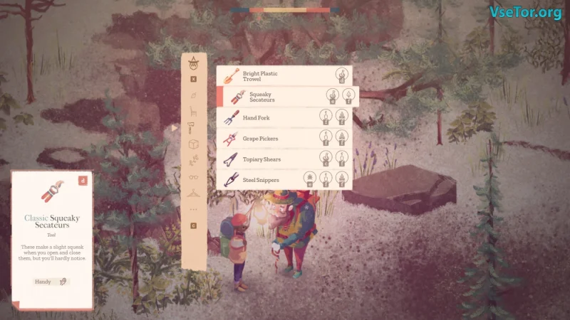 The Garden Path — это увлекательный симулятор жизни, который дарит игрокам уникальную возможность окунуться в мир садоводства и экспериментов. Всё начинается с создания вашего персонажа и попадания в чарующий сад, где вы обнаружите кусочек журнала, намекающий на множество тайн, которые предстоит разгадать. В этом волшебном пространстве, населенном дружелюбными героями с овощными головами, вам предстоит выполнять разнообразные задания, исследовать окружающую природу и развивать свои навыки садоводства.