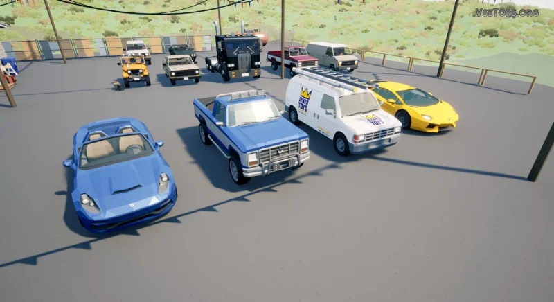 - Огромный выбор автомобилей, включая маслкары и грузовики.