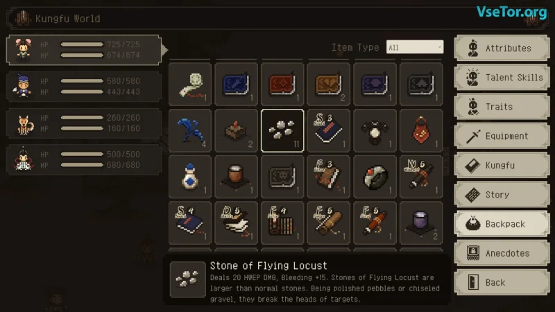 Геймплей представляет собой динамичное сочетание стратегии и тактики, где каждое сражение требует от вас внимательного планирования. Исследуйте заснеженные горы, древние руины и процветающие города, погружаясь в мир, наполненный приключениями и загадками. «The World of Kungfu: Dragon and Eagle» обещает быть не только захватывающим, но и уникальным опытом в мире ролевых игр.