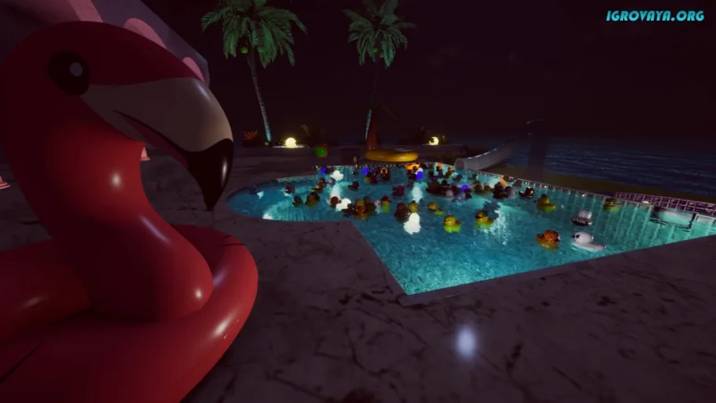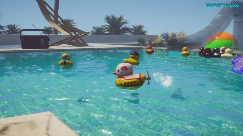 Погрузитесь в атмосферу расслабления вместе с Placid Plastic Duck Simulator. Забудьте о напряженных сражениях и борьбе за выживание — здесь вас ждут лишь солнечные дни, нежные звуки моря и мелодии из прошлого. Управляя уткой, вы сможете наслаждаться спокойным плаванием по бассейну, постепенно открывая новые виды уточек с их уникальными чертами. Некоторые из них выделяются ярким цветом, другие имеют необычную форму, а третьи удивляют своими забавными аксессуарами — шапочками и очками. Что еще нужно для идеального отдыха?