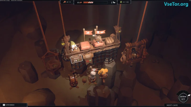Каждый гном обладает уникальными способностями, и их правильное применение способно значительно повысить шансы на успех. Геймплей игры разделён на две ключевые составляющие: исследование подземелий и строительство вашего города. В шахтах игроки управляют отрядом гномов, распределяя их на уровне для эффективной добычи ресурсов или ведения боевых действий с врагами. Каждый гном может выполнять несколько действий за ход, и с каждым новым этажом пещеры планирование становится всё более критичным. Основная цель — углубиться как можно дальше, собирая еду и древесину для поддержания жизнедеятельности вашей команды и защиты от летучих мышей.