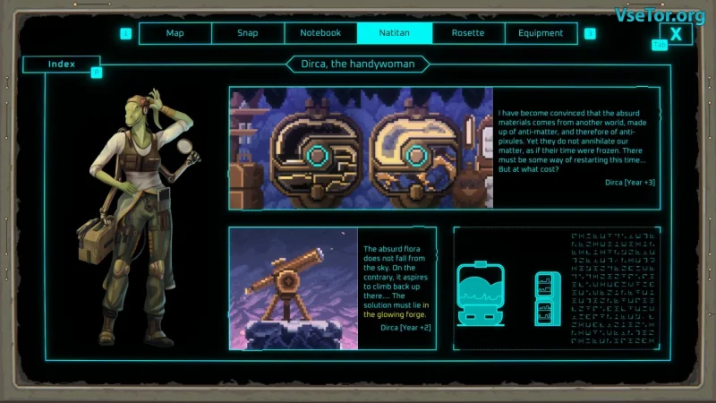 В ходе игры вам предстоит сталкиваться с различными препятствиями, но с новыми способностями, такими как "липкие ботинки", вы сможете преодолевать их с лёгкостью. Изучение новых частиц, таких как электроны и фотоны, открывает доступ к уникальным навыкам, улучшающим способности Ини. Exographer выделяется яркой графикой и продуманным миром, где каждый элемент тщательно проработан. Напряжённые моменты платформинга и глубокие головоломки делают процесс игры захватывающим и увлекательным. В ходе вашего путешествия вы откроете для себя угасшую культуру и их отчаянные усилия по спасению своего мира, что добавляет игре глубокий смысл и эмоциональную насыщенность.
