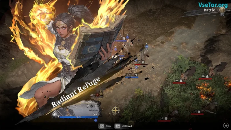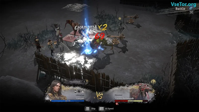 В игре представлена интересная механика, сочетающая пошаговые тактические бои и элементы roguelike. Каждое ваше действие становится испытанием, требующим от вас стратегического мышления и точных решений. Сражения разворачиваются на сетке, и успешное позиционирование ваших персонажей, а также разумный выбор оружия играют ключевую роль в победе. Вы можете собрать команду из четырёх уникальных союзников, каждый из которых обладает собственными навыками. Например, маг способен как исцелять, так и обрушивать мощные заклинания на врага, в то время как боец ближнего боя надёжно защищает команду с помощью щита и меча.