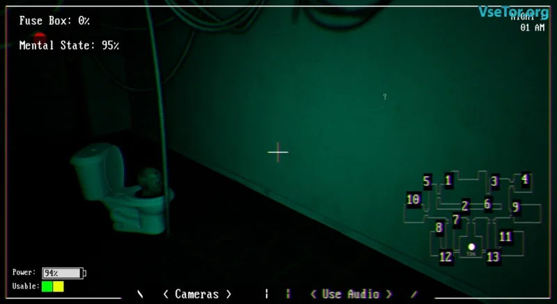 Five Nights At Skibidi Toilets – это захватывающий хоррор с элементами выживания и стратегического планирования, в котором вам предстоит разгадать тайну старого здания, которое стало центром городских слухов. В роли охранника под прикрытием вы будете исследовать мрачные коридоры, полностью оборудованные различными устройствами, которые помогут вам следить за ситуацией, экономить энергию и избегать встреч с жуткими «скибиди-туалетами».