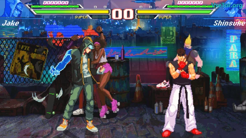 Blazing Strike — это захватывающий 2D-файтинг, выполненный в пиксельном стиле и вдохновленный классическими играми. Сюжет переносит игроков в мрачный постапокалиптический мир, где оставшиеся в живых представители человечества восстали против жестокого тоталитарного режима. В этой борьбе вам предстоит взять на себя роль бойца сопротивления, включая таких персонажей, как Джейк, чтобы сразиться с самыми сильными противниками и освободить мир от угнетения.