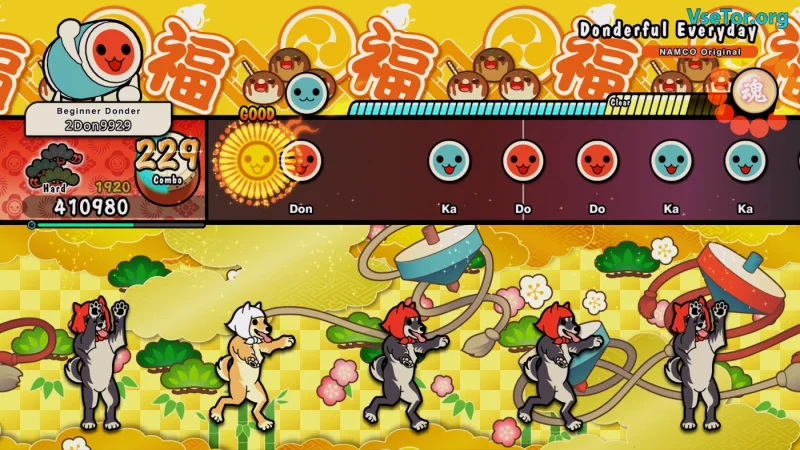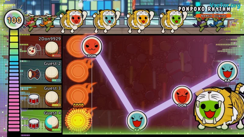 Taiko no Tatsujin: Rhythm Festival — это захватывающая ритм-игра, в которой участники оказываются в удивительном мире японских барабанов тайко. Легкий и интуитивно понятный игровой процесс позволяет каждому быстро освоить основные элементы: красные и синие ноты «дон» и «ка» требуют удара по барабану или нажимания кнопки в ритме музыки. По мере роста сложности, с увеличением скорости и плотности нот, игра становится интересной как для новичков, так и для опытных геймеров.