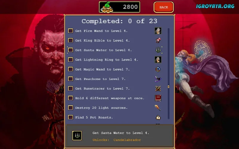 Каждая ночь в Vampire Survivors становится всё более напряженной. С наступлением темноты ваши враги оживают и начинают охотиться на вас, и только ваша ловкость и быстрая реакция помогут вам справиться с их атаками. Днем вы можете немного расслабиться, но не забывайте, что угрозы не дремлют, и к следующей ночи нужно подготовиться. Используйте дневное время для прокачки своих навыков, улучшения снаряжения и планирования стратегии, чтобы успешно противостоять полчищам врагов.