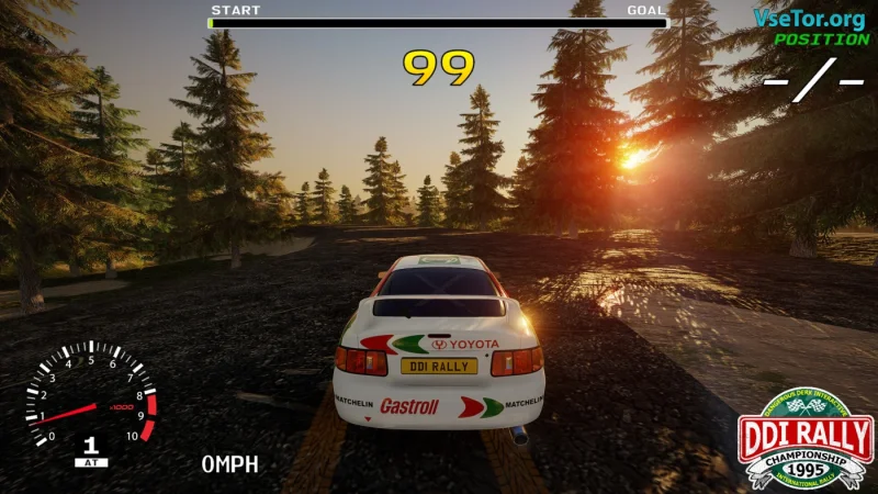 DDI Rally Championship – это увлекательный аркадный гоночный симулятор, который перенесет вас в атмосферу ярких 90-х, когда классические гонки завоевали популярность на Sega Rally. С самого начала игры вы почувствуете дань уважения к истории аркадных гонок, где каждая деталь, от музыкального сопровождения до стилистики меню, передает дух того времени. Вы сможете прокатиться на легендарных треках и за рулем автомобилей с узнаваемыми названиями, которые отсылают к известным моделям, таким как Yoyota Helica и Lanica Belta.